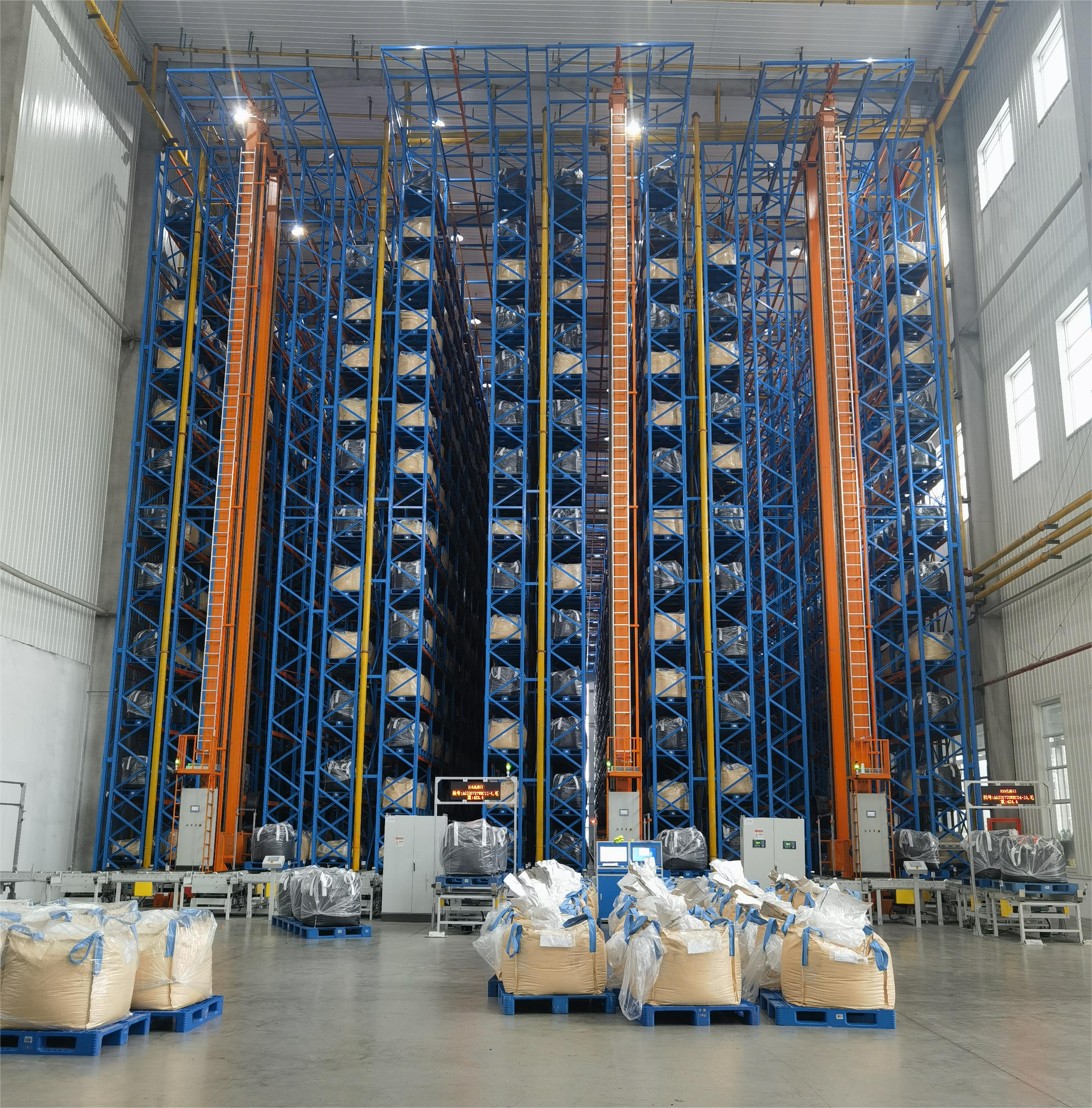 本立體倉庫全套設(shè)備由貨架、堆垛機(jī)系統(tǒng)、穿梭車、輸送線、計(jì)算機(jī)調(diào)度監(jiān)控系統(tǒng)和倉庫管理系統(tǒng)等組成??傌浳?544個,鈦白粉庫4320個(13.5排*2貨位*16列*10層),漿包庫2224(24排*12列*8層-10排*8層),鏈條輸送機(jī)、漿包整形機(jī)、直行穿梭車,WCS/WMS系統(tǒng)各一套。
