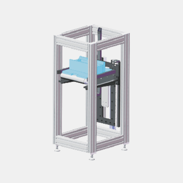 提升機(jī)應(yīng)用于企業(yè)高層廠房,實(shí)現(xiàn)貨物換層。相較于傳統(tǒng)貨梯,效率高、自動(dòng)化程度高,受認(rèn)為因素影響小??梢詫?duì)接其他自動(dòng)化物流設(shè)備,如AGV、穿梭車、各類輸送線等,是智能工廠不可或缺的設(shè)備。設(shè)備根據(jù)應(yīng)用場(chǎng)景不同,可設(shè)計(jì)為焊接框架、拼裝框架(井道環(huán)境)。采用頂部減速電機(jī)驅(qū)動(dòng)鏈輪,4根轎廂鏈條,2根配重鏈條,將轎廂提升至指定高度平穩(wěn)??俊0踩矫孀龅椒罌_撞、防斷鏈、防過載,每層配置快速安全門,防止人員誤入。運(yùn)行平穩(wěn)、速度高、精度高、噪音低