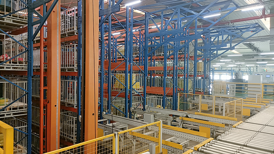 本方案總貨位3712個(gè),高度11m。本立體倉(cāng)庫(kù)系統(tǒng)全套設(shè)備由貨架、巷道堆垛機(jī)系統(tǒng)及巷道設(shè)備(天軌、地軌、滑觸線)、輸送系統(tǒng)、計(jì)算機(jī)調(diào)度監(jiān)控系統(tǒng)(WCS)、倉(cāng)庫(kù)管理系統(tǒng)(WMS)、SCADA、MES、中控大屏和托盤(pán)等組成。提高35%運(yùn)行效率。